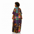 One size fits most. Prints, colors, and placement will vary due to the patchwork design. Variations are intentional and part of the beauty of the Gumbo Bubu.
