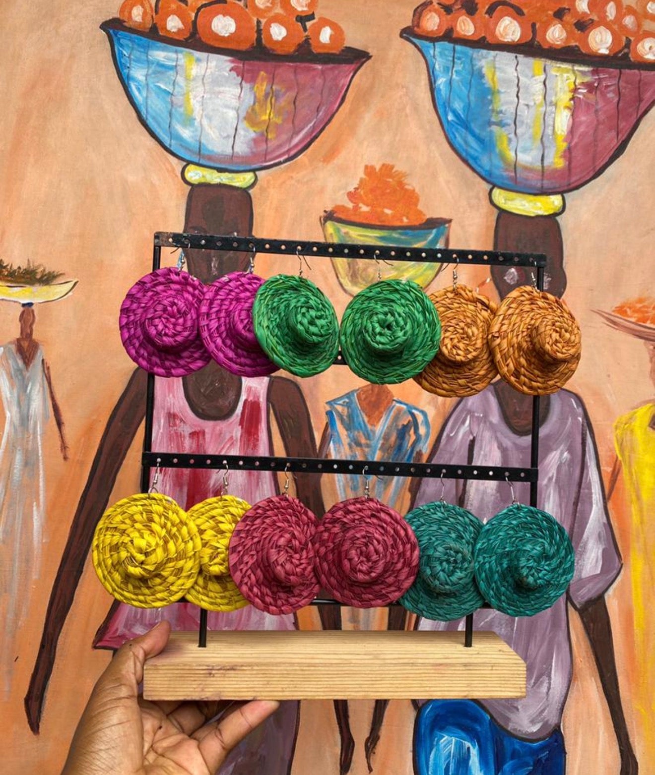 Ada Disc Earrings – Handwoven Rattan Statement Earrings from Ghana