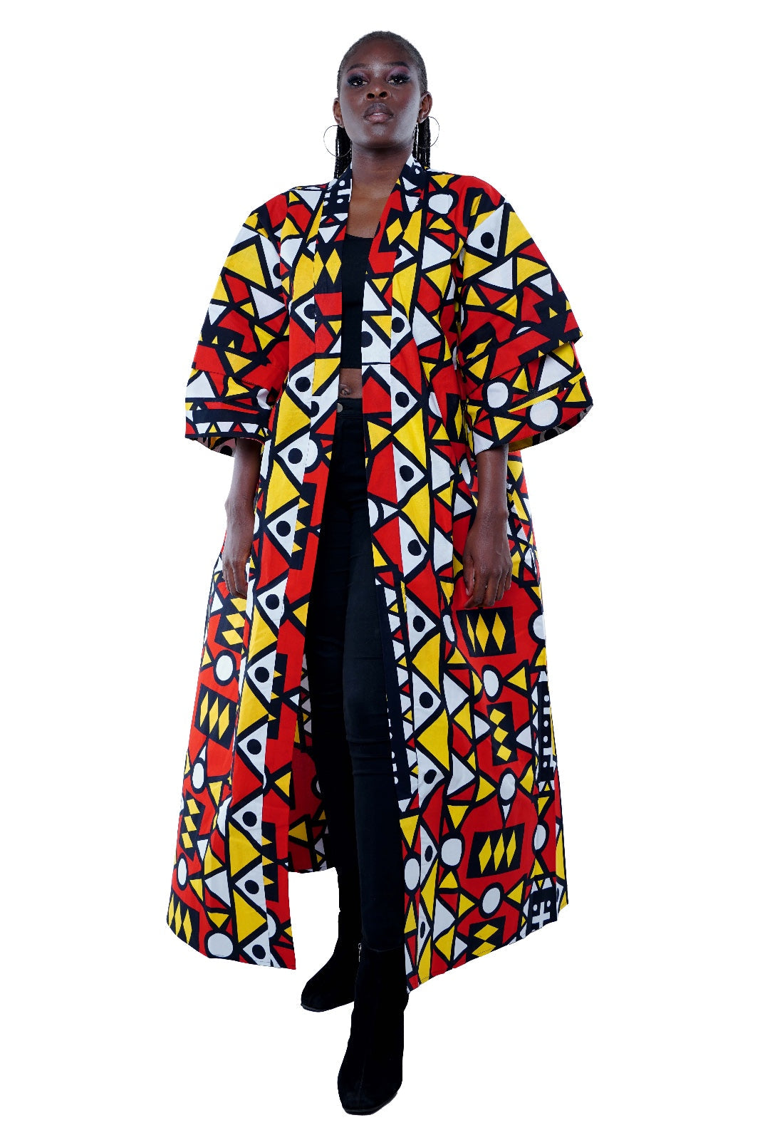 Expertly crafted and designed, this African Long Kimono is made from 100% cotton for superior comfort and durability. Perfect as a robe, duster, or elegant kimono, this one-size piece adds a touch of culture and style to any outfit. Experience the benefits of lightweight, breathable fabric with a bold and vibrant African print.
