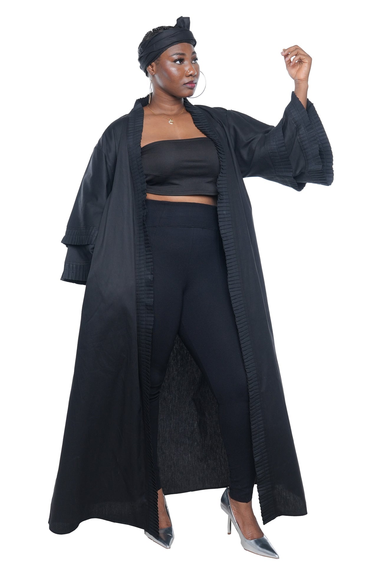 African Print Long Duster Kimono for Women with Headwrap | 100% Cotton