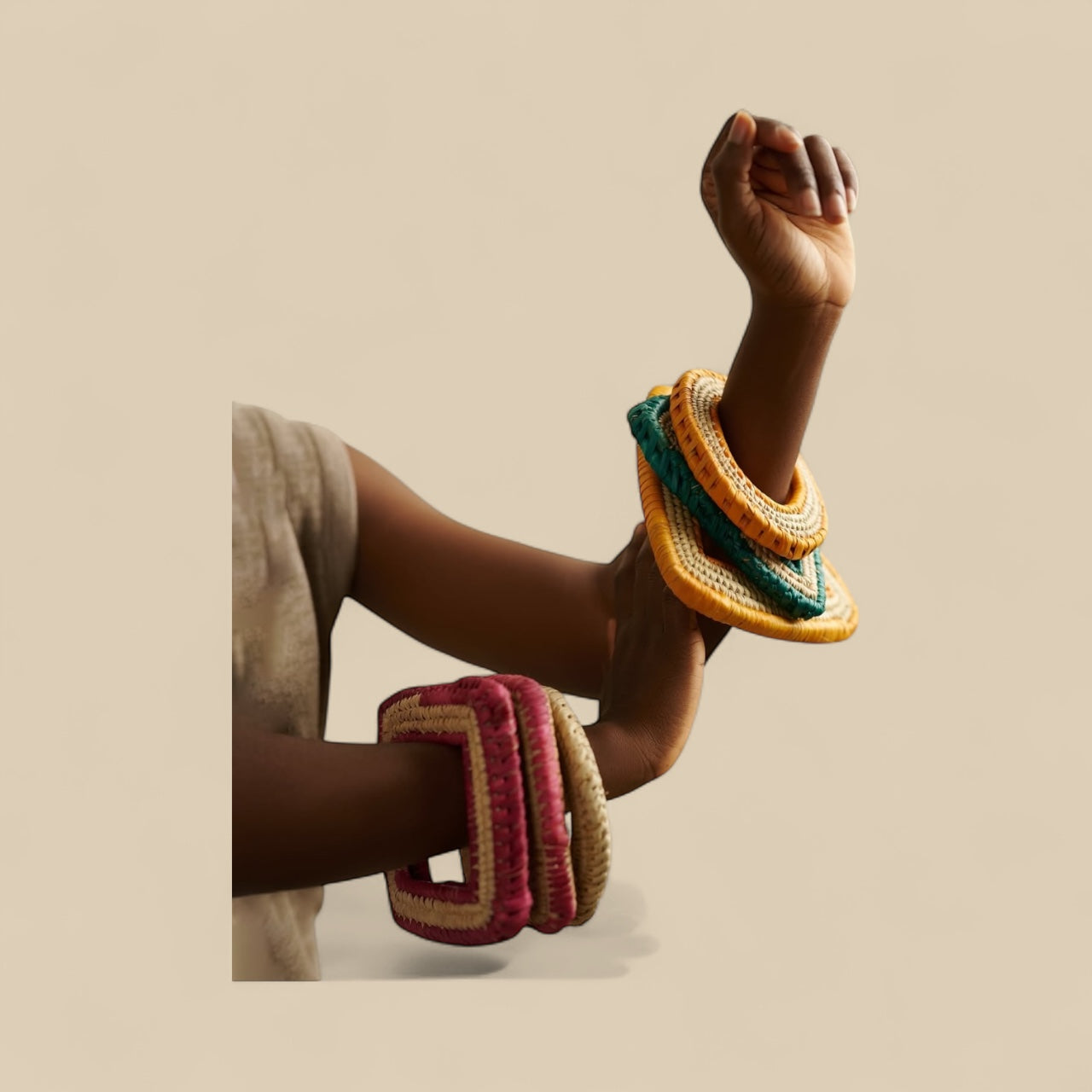 Bring culture to your wrist with our Sankofa Weave Bracelets, handmade by skilled artisans in Ghana. Each piece is crafted from natural rattan and dyed in vibrant earth tones inspired by West African heritage. Lightweight yet bold, these geometric bangles make the perfect statement for hair shows, festivals, or everyday wear.